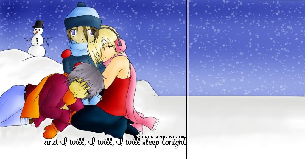 Hihi~ This is my sixteenth layout for this journal, featuring Scheric Troy, Ashe Lefouer, and Inari Ishikawa from my and Steph's webcomic, Atrophy, and the song "Donna and Blitzen" by the band Badly Drawn Boy, off the Maybe This Christmas Too CD. The HTML was done by Nicocole, who is awesome (thank you so much!) and edited by Steph to work with this layout. It was designed for an 1024x768 resolution, and I have nooooo idea how it looks in anything else o_o.